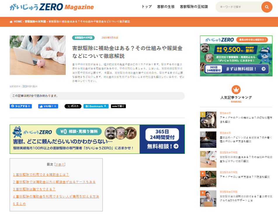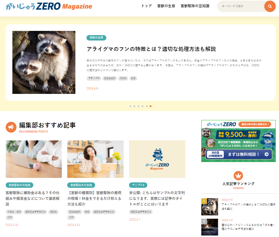 私たちが行う害獣駆除がどのような仕事であるのか、一般のお客様にはあまり知られていません。『害獣駆除はどこに依頼するのか』から『ネズミやコウモリ等の害獣が自宅周辺に現れた時の対処法』など、情報提供の側面も含めてお客様に害獣ZEROを認知してもらうのに有効と考えていました。