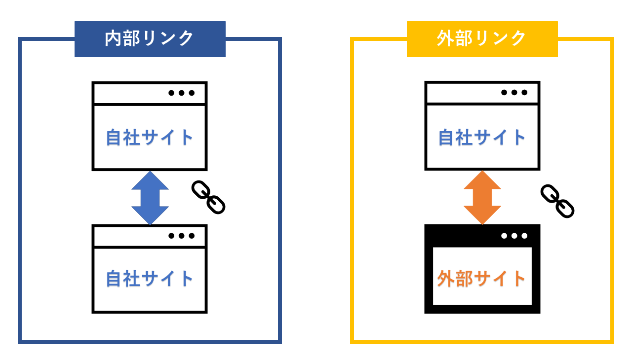 例えば、統計データの参照元に行政機関のウェブサイトにリンクを張る場合は外部リンクとなりますが、独自に行った調査結果を自社サイトの他のコンテンツから引用する場合は内部リンクとなります。