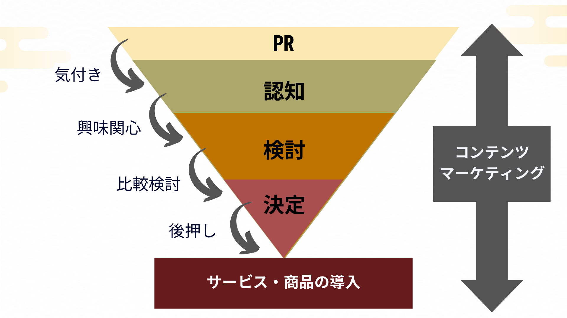 各フェーズに応じた適切なコンテンツを通じて顧客とコミュニケーションを続けることで、最終的な受注へとつながるスムーズな購買プロセスを支えることができます。コンテンツマーケティングはファネルのどの段階でも重要な役割を果たし、効果的な施策であるといえます。
