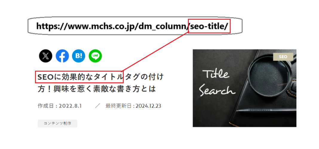 これに対して、キーワードやコンテンツ内容に沿ったURLを設定することで、リンクを見ただけでページ内容がわかるようになり、ユーザーにとっても利便性が高く、検索エンジンにも内容が明確に伝わります。