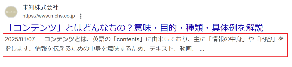 メタディスクリプションは、検索結果ページに表示されるウェブページの概要部分で、検索ユーザーがページ内容を簡潔に理解できるように要約した文です。