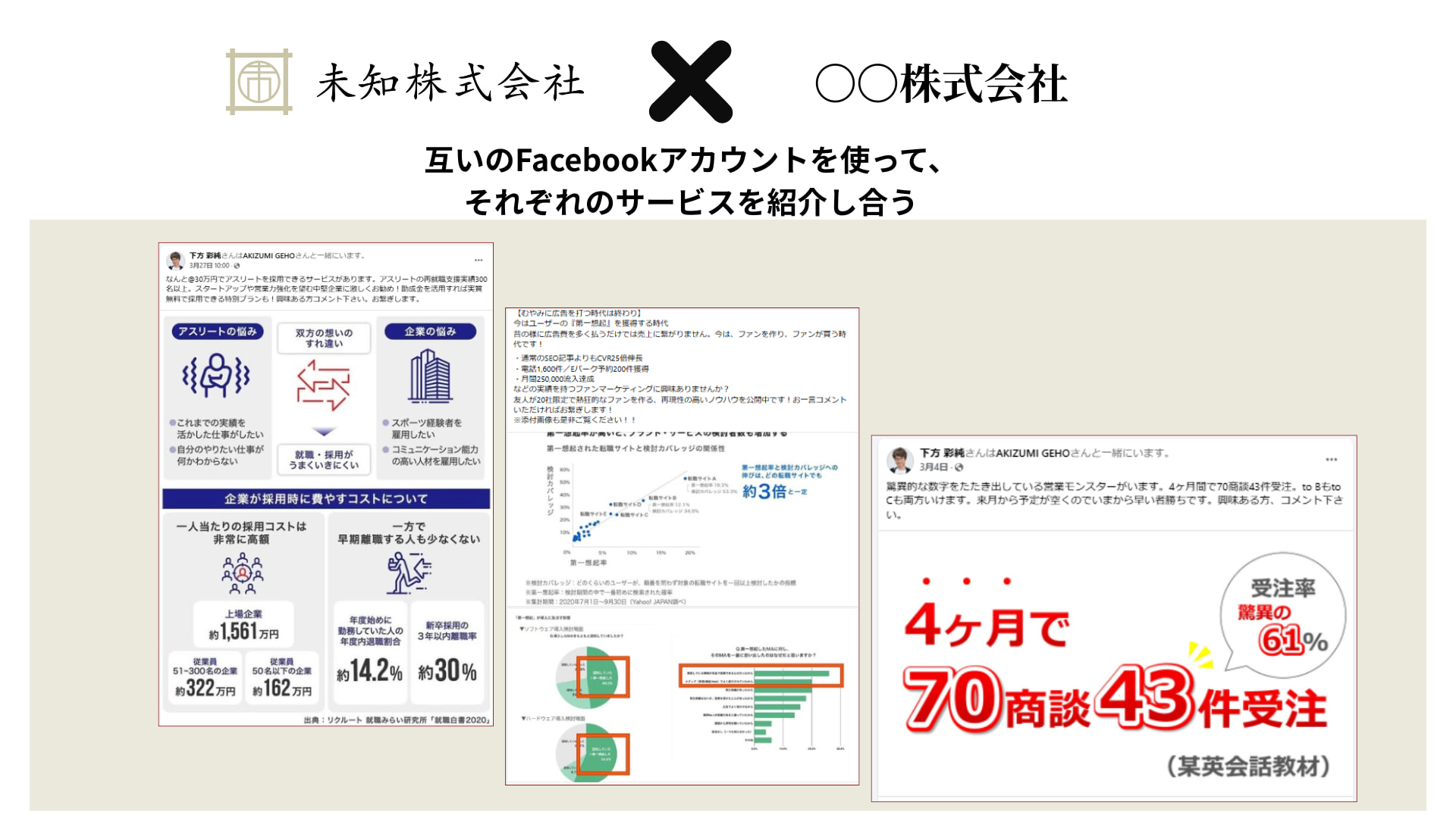 過去にはDM(ダイレクトメッセージ)を通じたサービス案内も実施していました。具体的には、相互フォローで関係性が築かれた相手に限定して、タイミングを見てDMを送信し、商談につなげるアプローチです。