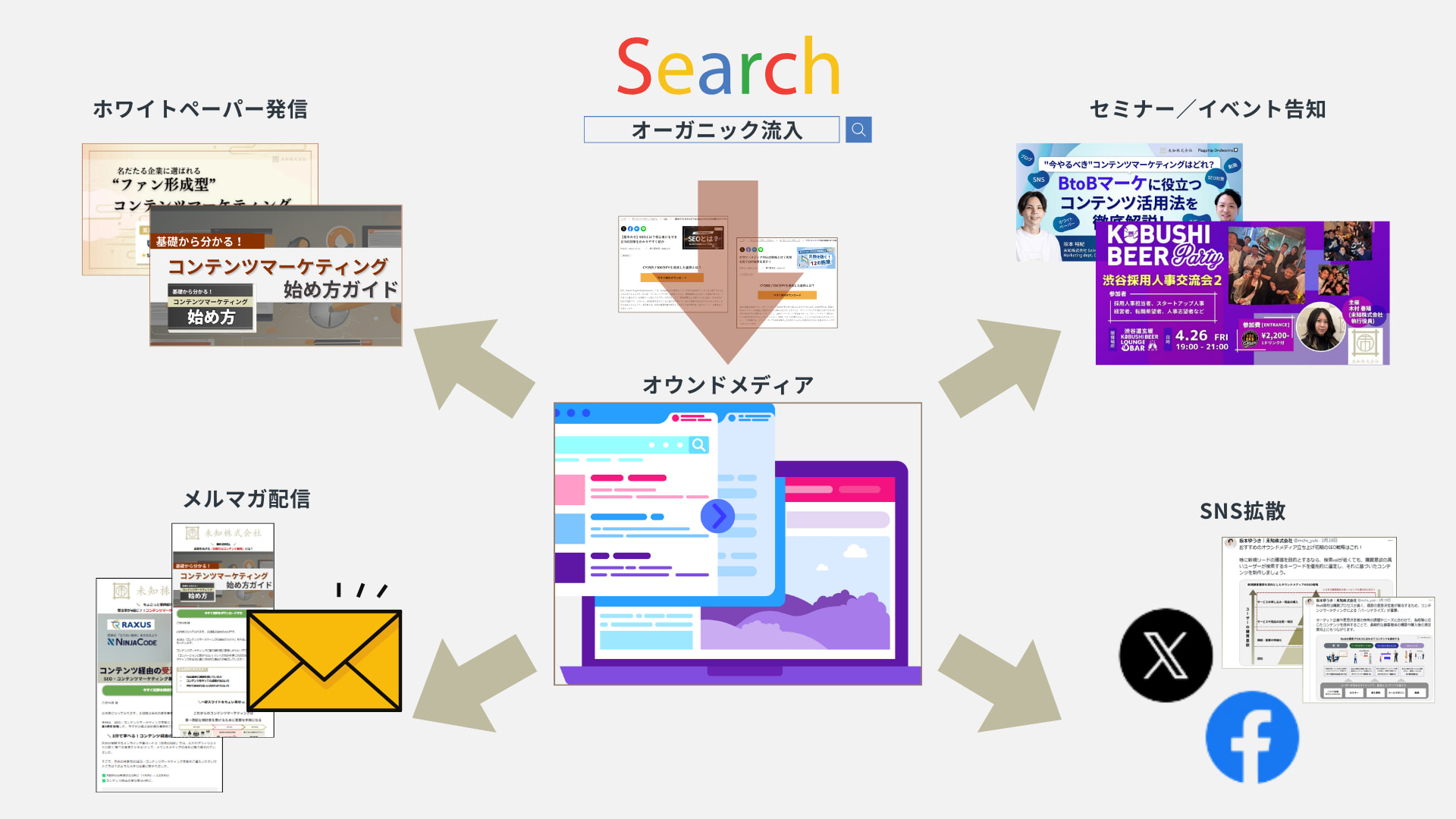 一方で、逆もしかりで提案書や動画などからオウンドメディア内の記事に転じることも珍しくありません。このような形で相互に補完し、メディアを強化し続けることも可能なのです。