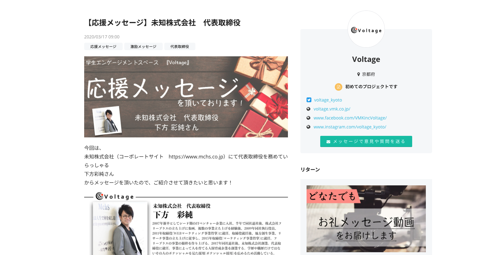 弊社社長下方のVoltageへの応援メッセージが掲載されました!