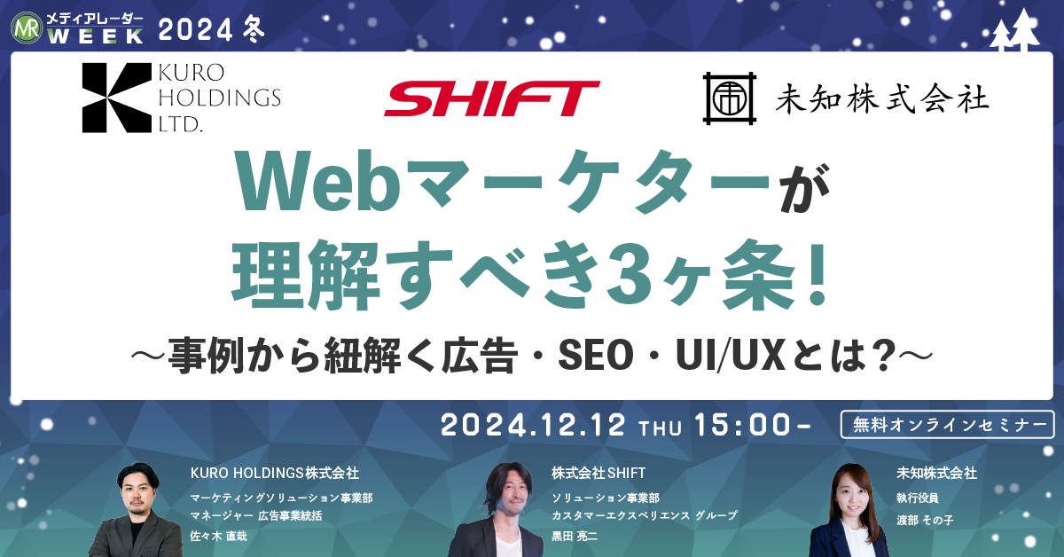 Webマーケティングが企業の成長において重要な鍵を握る現代。本セミナーでは、競争が激化するマーケティング環境を勝ち抜くために必要な戦略や手法を、具体例を交えて分かりやすくご紹介します。