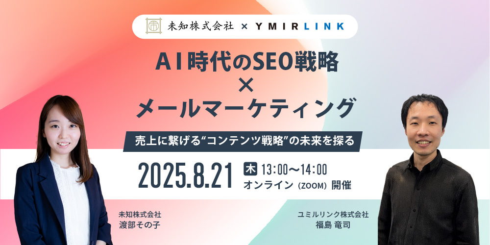 このたび、8月21日(木)に、SEO×メールマーケティングで成果を最大化する最新手法に関する無料オンラインセミナーを開催いたします。