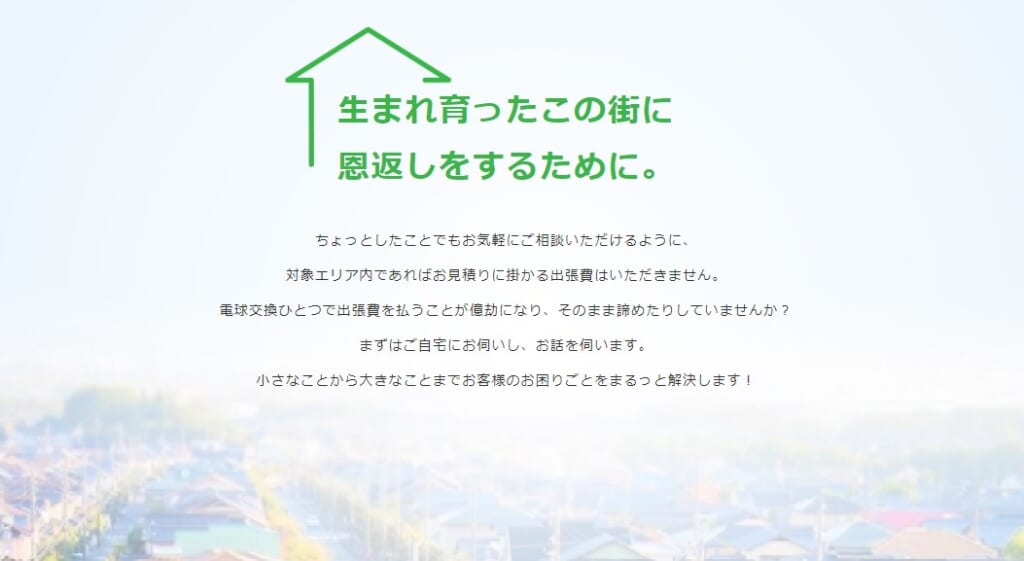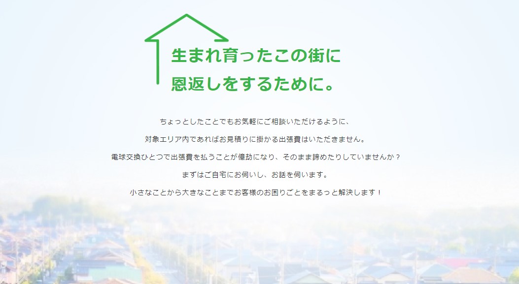 電球の交換から各種リフォームまで、家のお困りごと全般に対応する出張サービスです。他のサービスと異なる特長としては、出張費や見積もり費用は不要で、実際の作業の対価のみいただくこと。そのため、小さなことからお気軽にご要請いただけます。